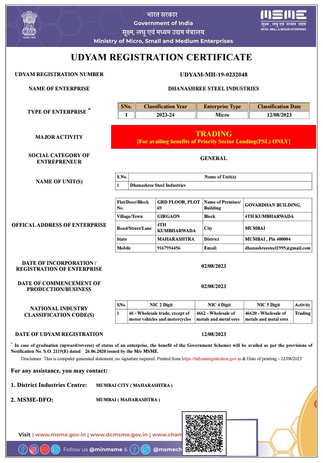 dhanashreesteel1995@gmail.com